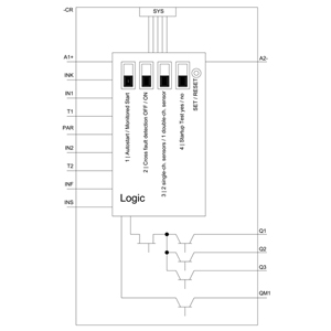 Relé de segurança SIRIUS Unidade básica Série avançada 3 circuitos eletrônicos de habilitação 1 circuito de sinalização eletrônica Us = 24 V DC Terminal tipo mola (push-in)