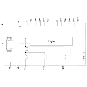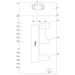 Relé de segurança SIRIUS unidade básica série 3SK2 10 F-DI, 2 F-DQ, 1 DQ, 24 V DC Pode ser parametrizado via SIRIUS Safety ES 22,5 mm de largura total terminal de mola (push-in) até SIL 3 (IEC 62061) até nível de desempenho e (ISO 13849-1) expansões de saída 3SK1, relé de acoplamento 3RQ1 e partidas de motor à prova de falhas 3RM1 via conector de dispositivo conectável