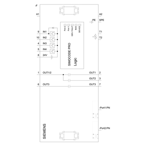 Dispositivo básico SIMOCODE pro V PN, E/S Ethernet/PROFINET, redundância do sistema PN, servidor OPC UA, servidor web, taxa de transferência de 100 Mbps, 2 conexões de barramento via RJ45, 4 E/S livremente configuráveis, Alimentação: 110…240 V CA/CC, entrada para conexão de termistor, saídas de relé monoestáveis, expansível por módulos de expansão.