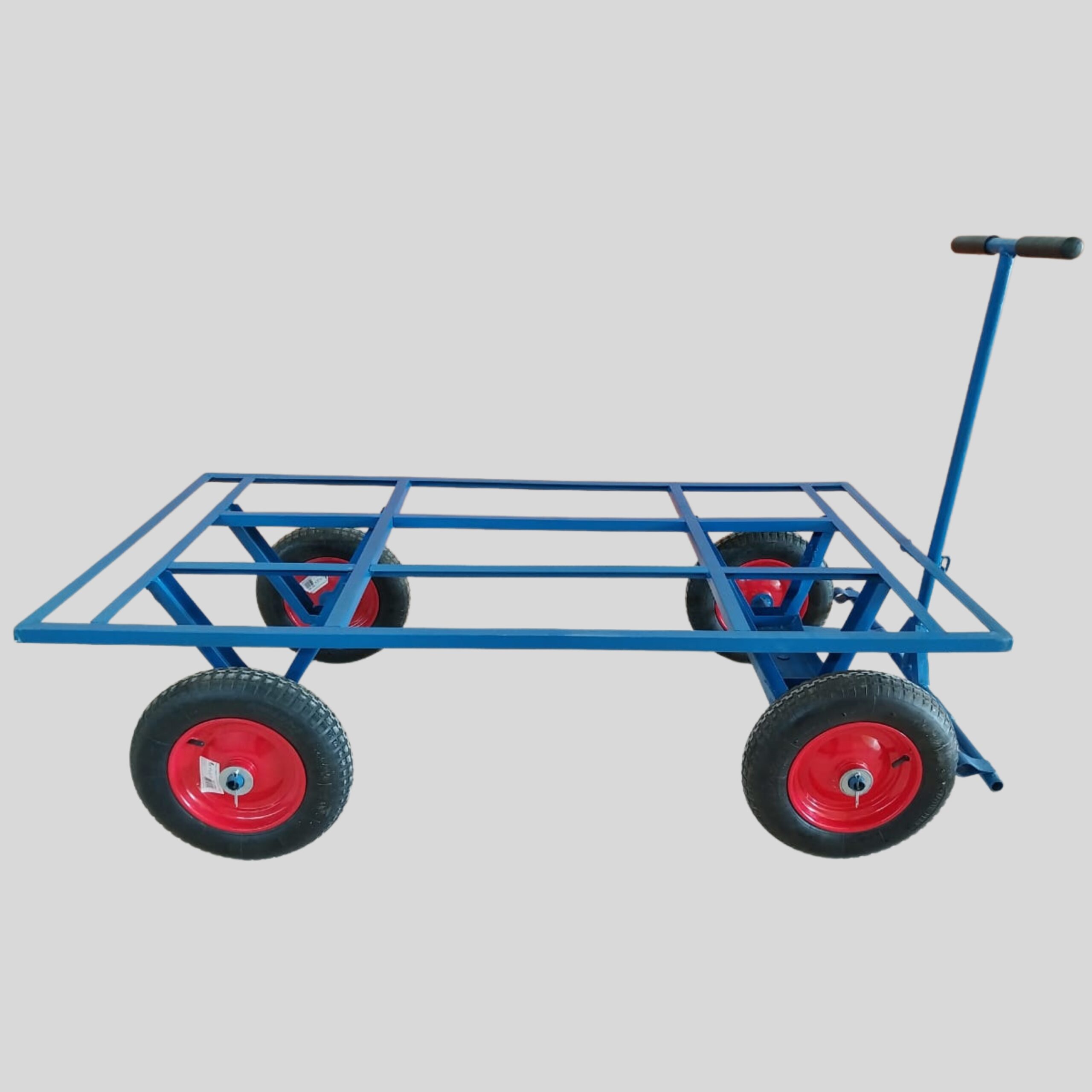 Projetado para o transporte seguro de cargas de até 400 kg, o EPV400-4RC utiliza um sistema de 4 Rodas de ferro de 28” c/ furo de 25mm e Pneus 4 lonas com câmara, que garantem melhor distribuição do peso, elevada estabilidade e segurança durante a operação.
