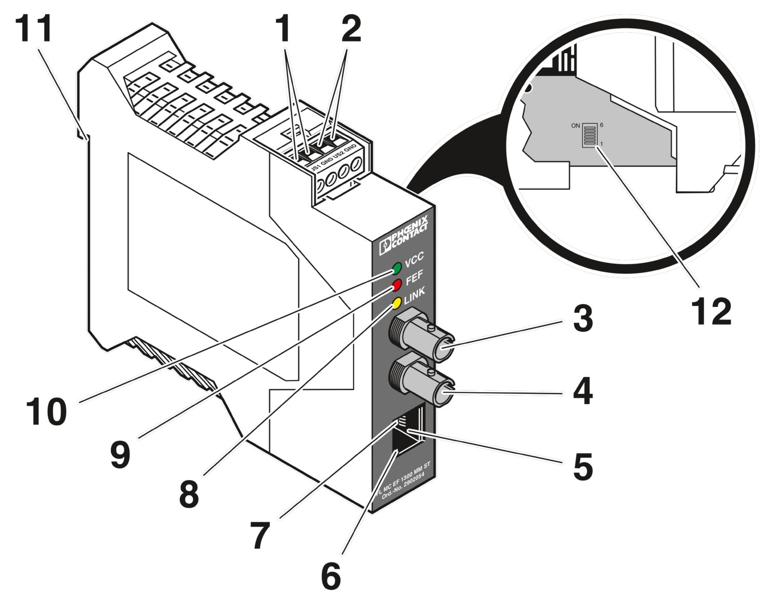 Conversor de fibra óptica com conexão de fibra óptica B-FOC (ST®) (1300 nm), para conversão de 10/100Base-T(X) para fibra de vidro multimodo (50/125 µm). Autonegociação e função Auto MDI(X). Diagnóstico abrangente de links. Fixação em trilho, alimentação 18 a 30 V DC