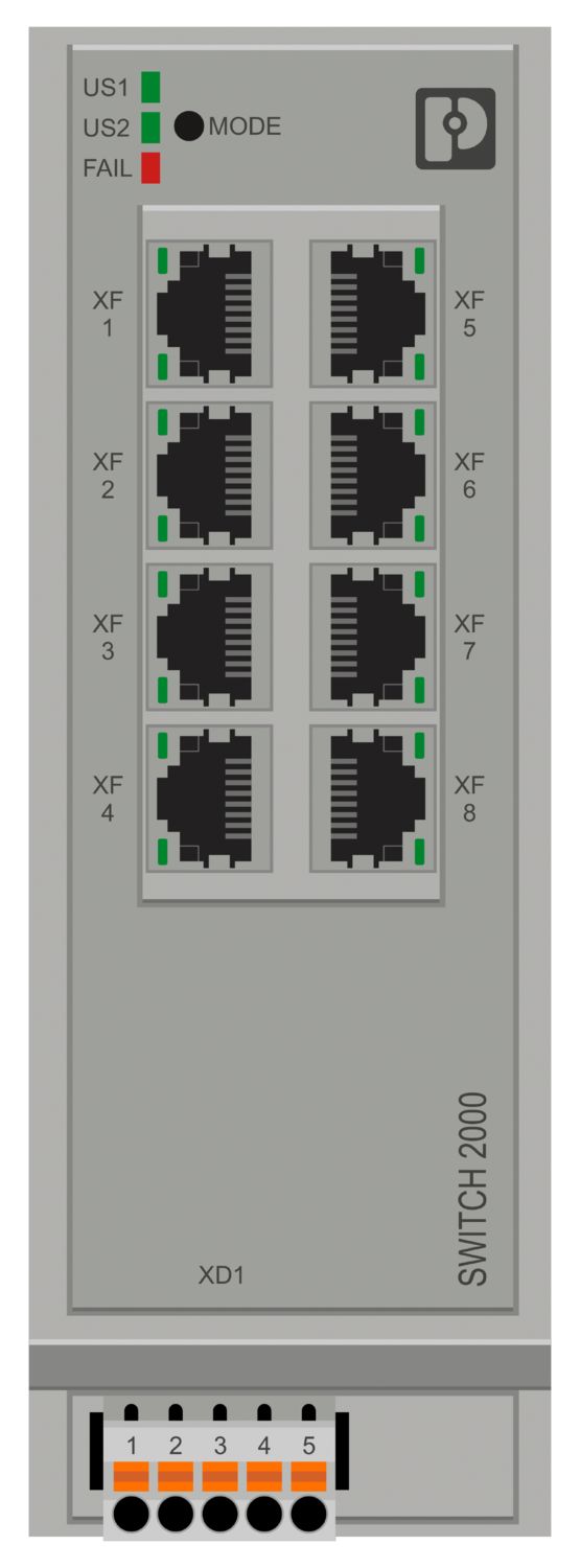 Managed Switch 2000 série, 8 Portas RJ45 10/100 MBit/s, grau de proteção: IP20, Temperatura ambiente (funcionamento): -40 °C … 70 °C, Faixa de tensão de alimentação: 9 V DC … 57 V DC, PROFINET Conformance Class B, Faixa de temperatura ampliada, Placa de circuito impresso pintada, faixa de temperatura ampliada, Processo de desenvolvimento conforme a norma IEC 62443-4-1, Certificação do produto conforme IEC 62443-4-2