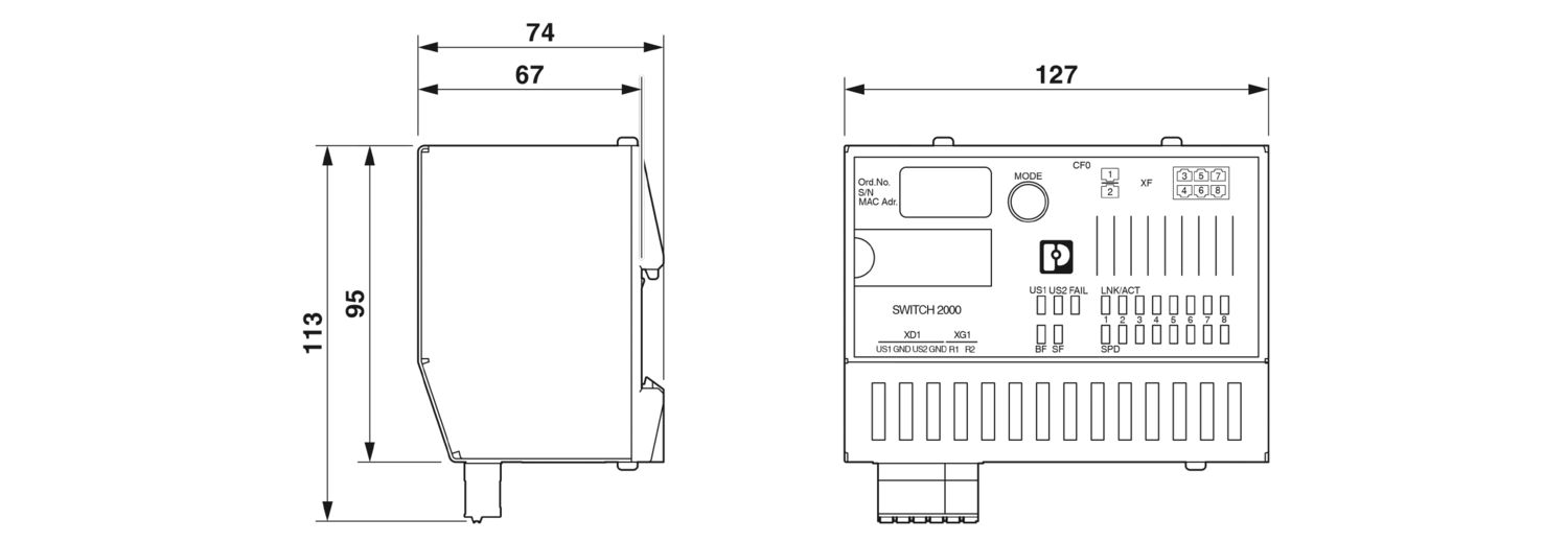Managed Switch 2000 série, 6 Portas RJ45 10/100/1000 MBit/s, 2 Portas SFP 100/1000 MBit/s, grau de proteção: IP20, Temperatura ambiente (funcionamento): -40 °C … 70 °C, Faixa de tensão de alimentação: 19 V DC … 32 V DC, PROFINET Conformance Class B, Faixa de temperatura ampliada, Modo PROFINET pré-ajustado, LEDs de estado PROFINET, Processo de desenvolvimento conforme a norma IEC 62443-4-1, Certificação do produto conforme IEC 62443-4-2