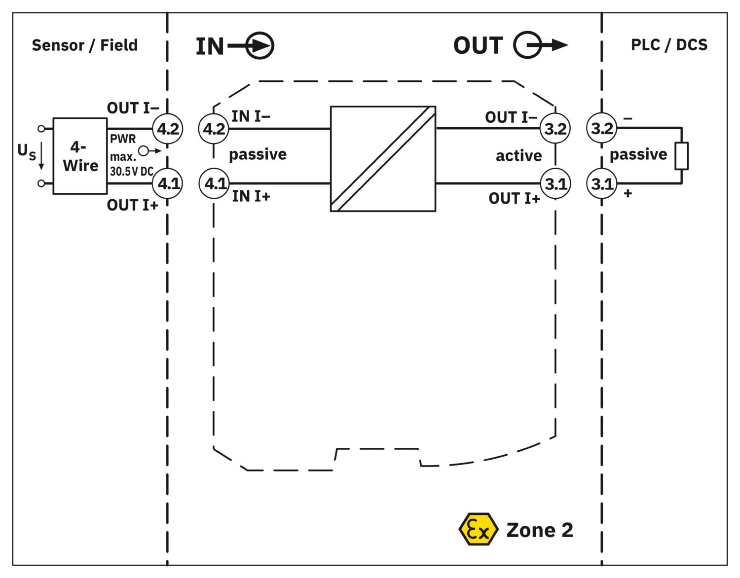 Isolador passivo alimentado por loop de entrada com maior tensão de isolamento para isolamento galvânico de sinais de 0 mA/4 mA … 20 mA. Sinal de entrada = Sinal de saída. quantidade de canais: 1, Configuração padrão, circuito fechado, Isolamento de 2 vias, Safety Integrity Level (SIL, IEC 61508): 3, Conexão a parafuso