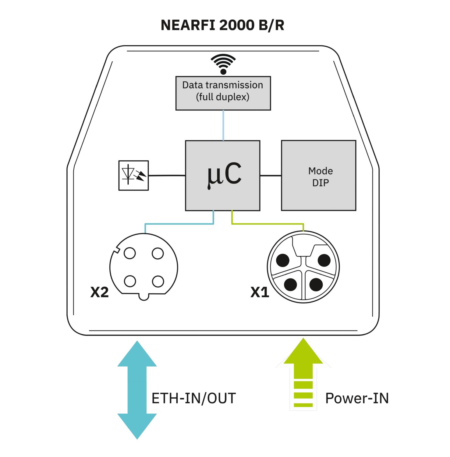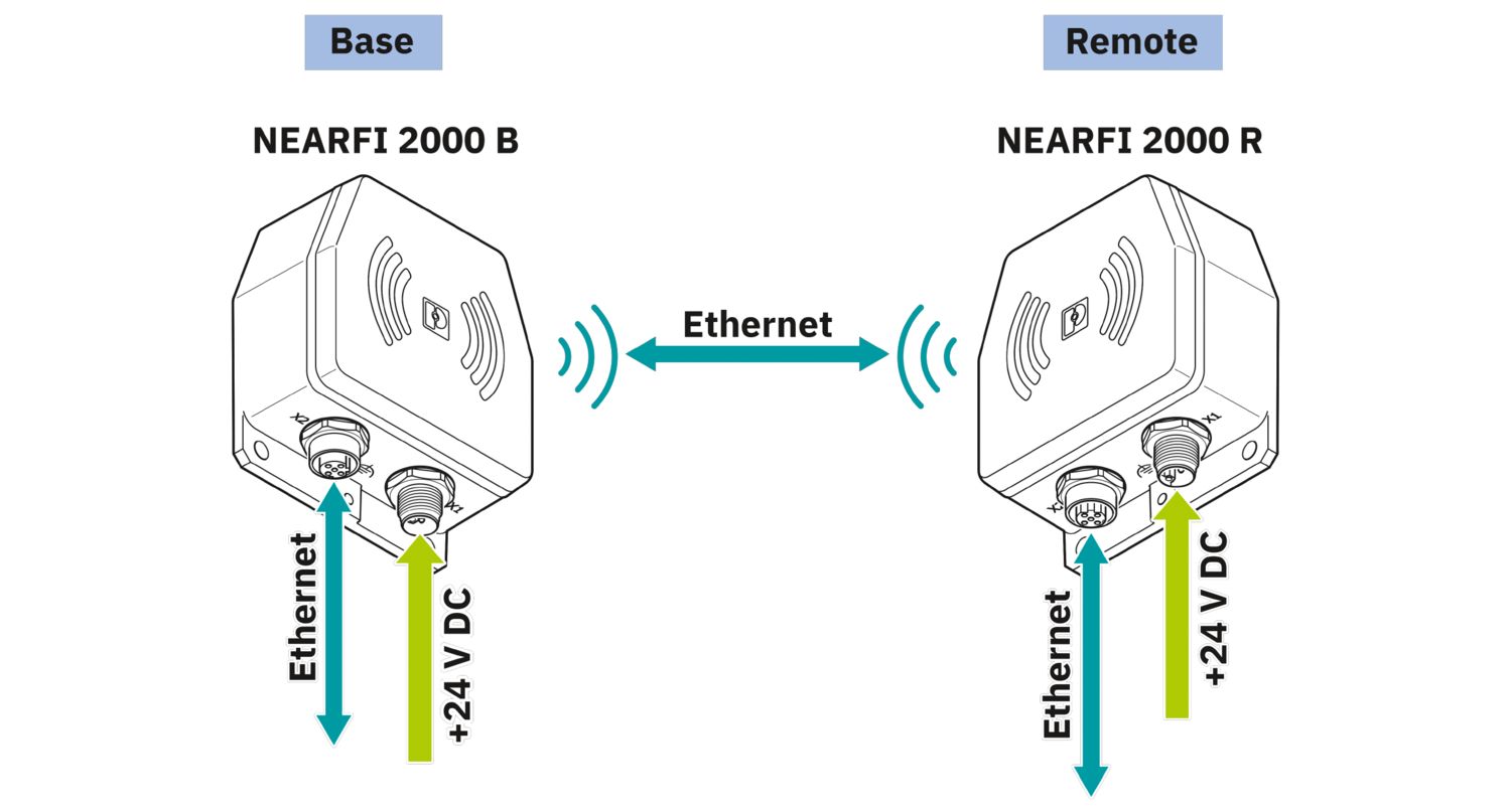 NearFi-Remote, acoplador Ethernet em tempo real sem contato, 100 MBit/s, alcance ≤100 mm, M12 PUSH-PULL, IP65, pode ser combinado com o NEARFI 2000 B