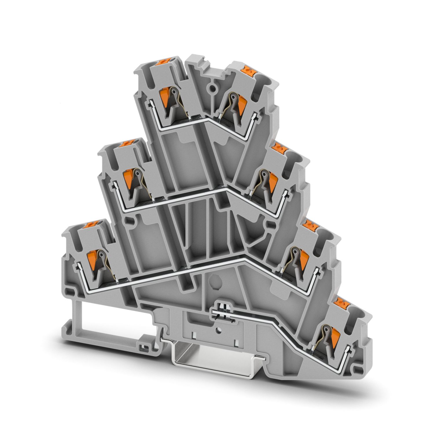 Terminal de motor, quatro níveis, tipo de conexão: conexão push-in, bitola: 0,14 mm2 – 4 mm2, AWG: 26 – 12, largura: 5,2 mm, altura: 91,1 mm, cor: cinza, tipo de montagem: NS 35/7,5, NS 35/15