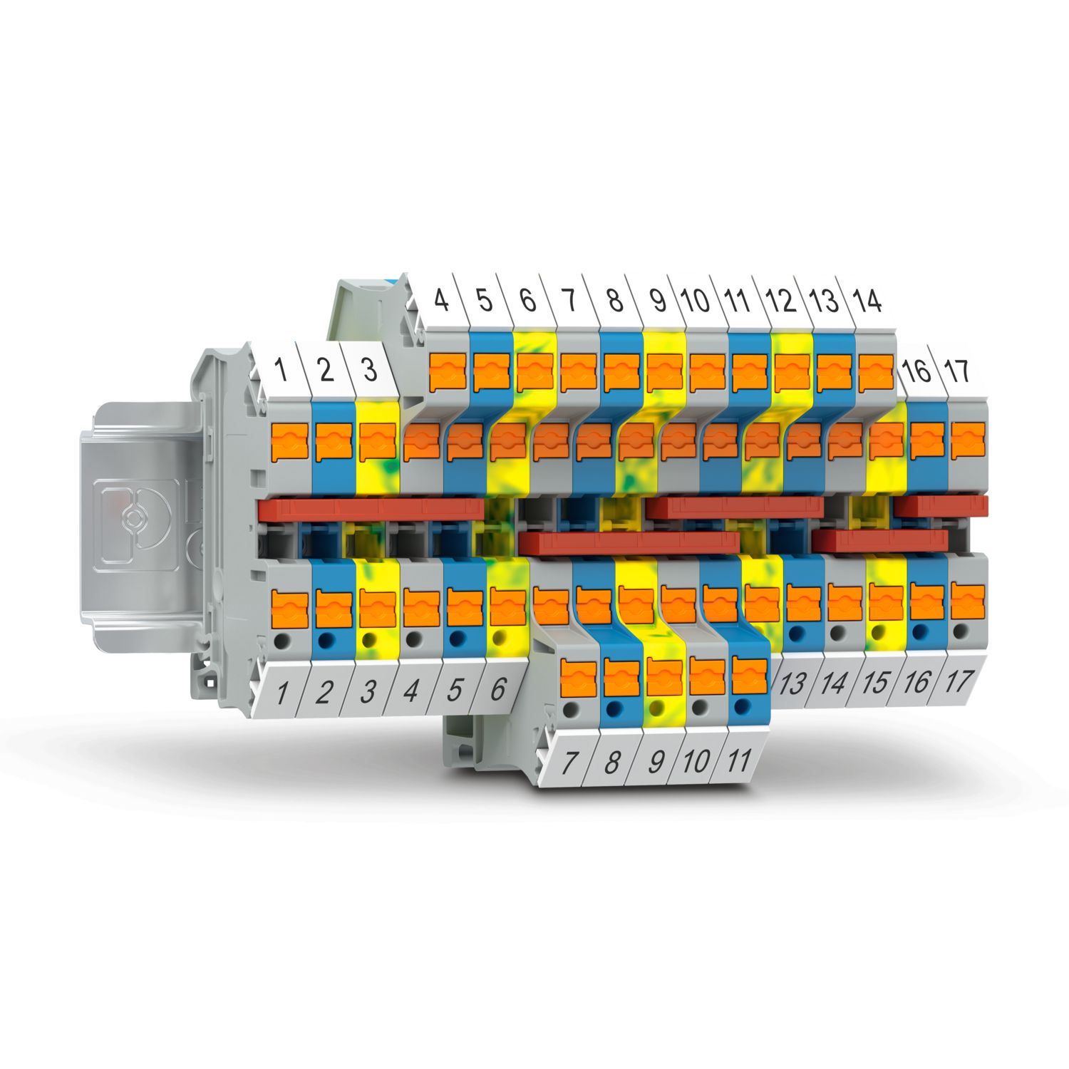 Borne de passagem, tensão nominal: 1000 V, corrente nominal: 32 A, quantidade de conexões: 2, tipo de conexão: Conexão Push-in, Bitola: 4 mm2, perfil de conexão: 0,2 mm2 – 6 mm2, tipo de montagem: NS 35/7,5, NS 35/15, cor: cinza