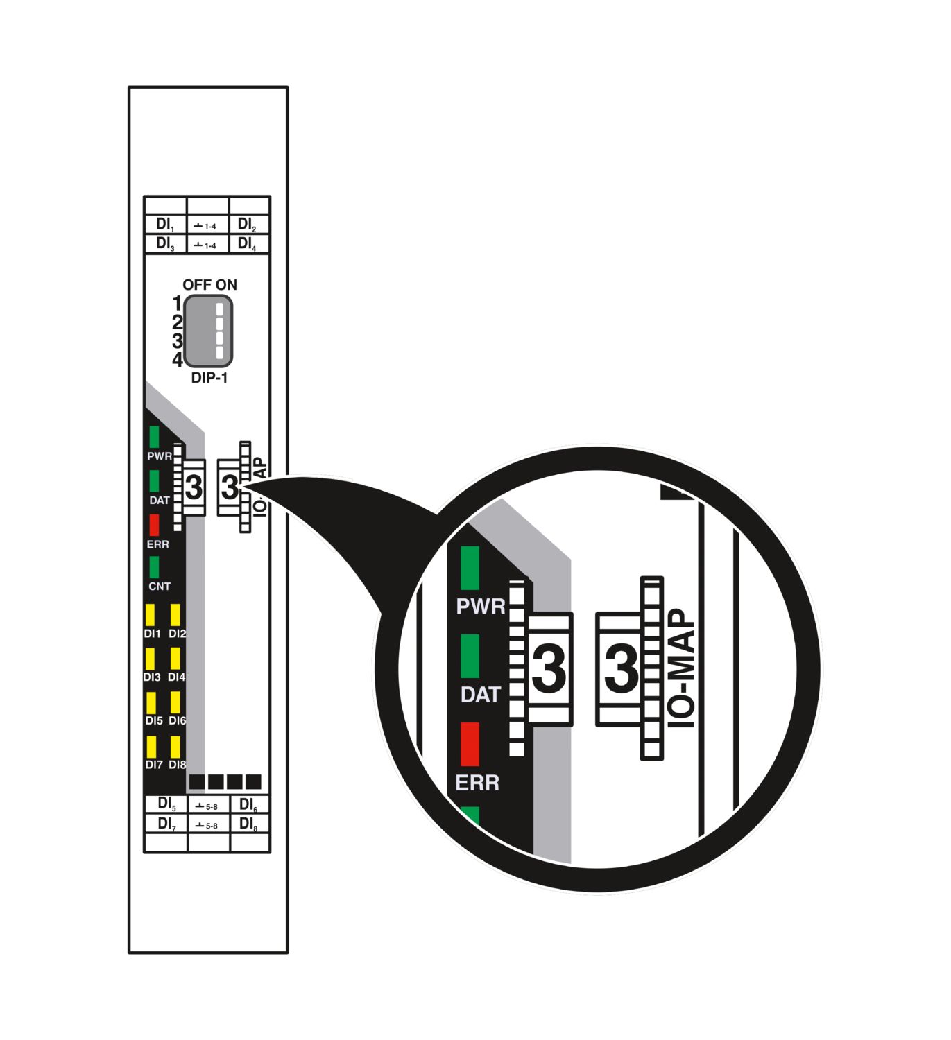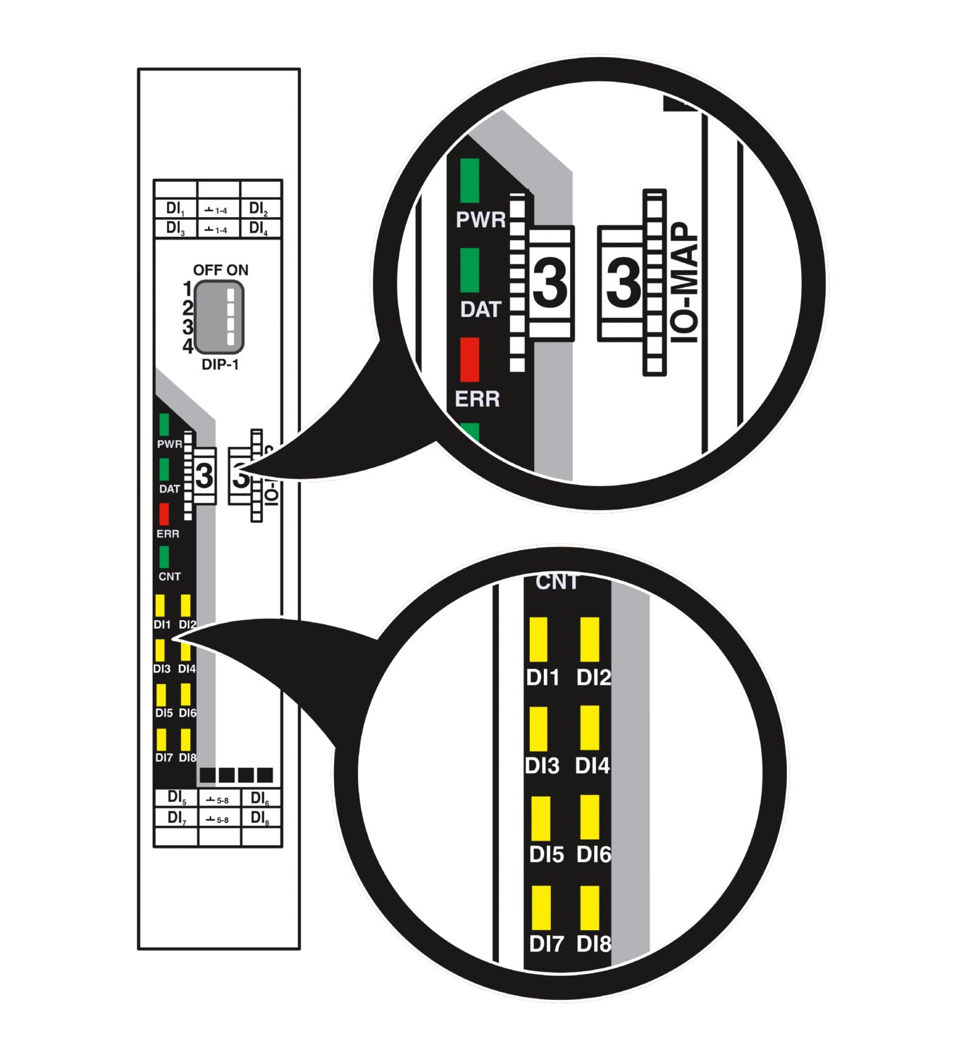 Radioline – Módulo de expansão I/O, 8 entradas digitais (0 … 30,5 V DC) ou 2 entradas de impulso até 100 Hz