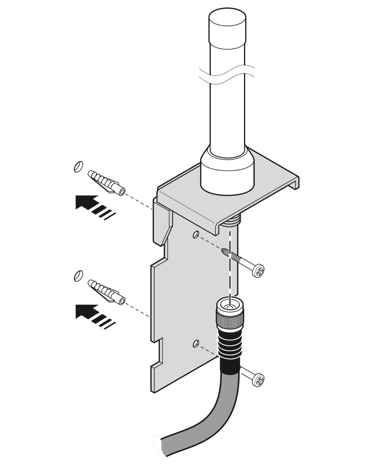 Antena omnidirecional para montagem em parede ou mastro, 2,4 GHz, ganho: 6 dBi, grau de proteção: IP67, resistente à água do mar, resistente a choques e vibrações, conexão: N (fêmea), incl. suporte de montagem e braçadeiras para mastro, certificação ATEX e IECEx