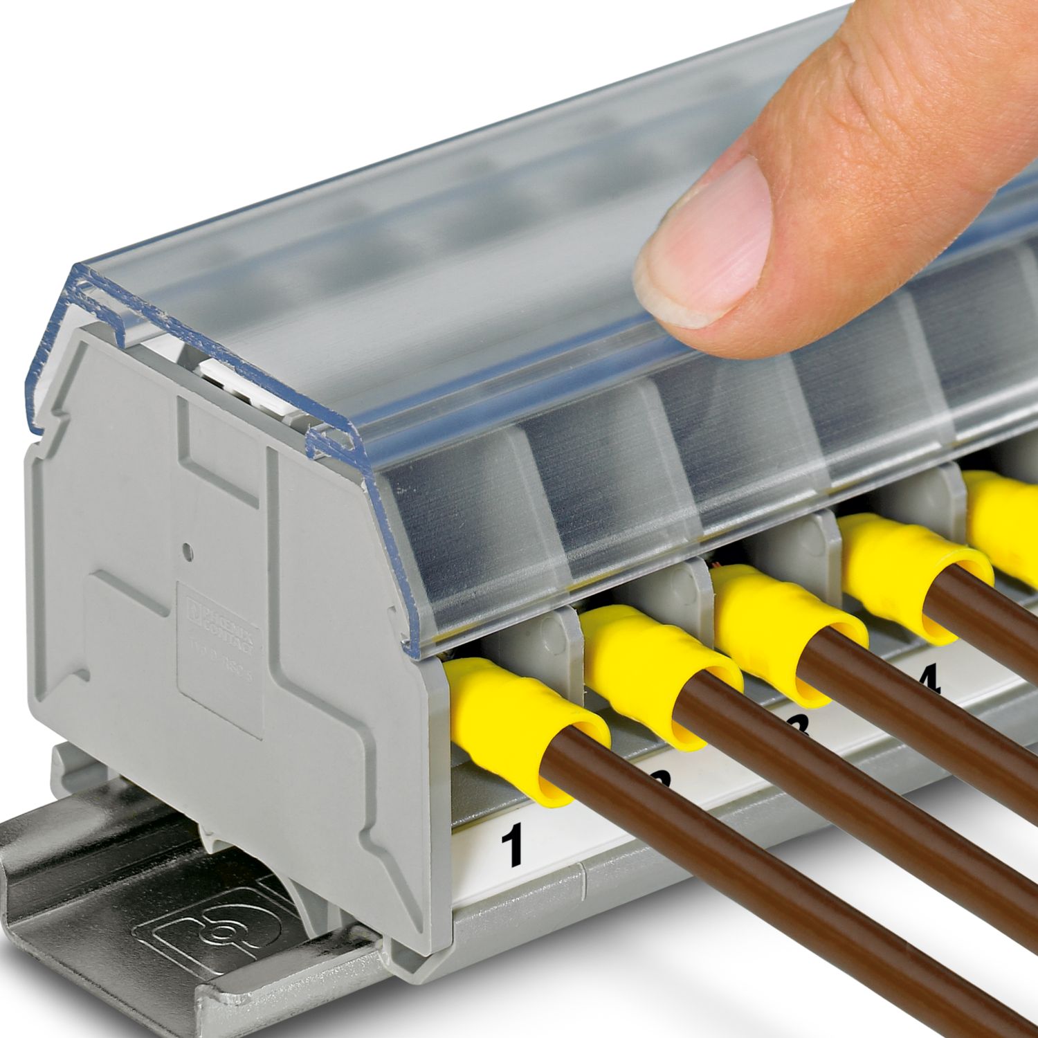 Borne de passagem com conexão olhal, bitola: 0,1 – 6 mm2, AWG: 26 – 10, largura 9 mm, cor: cinza