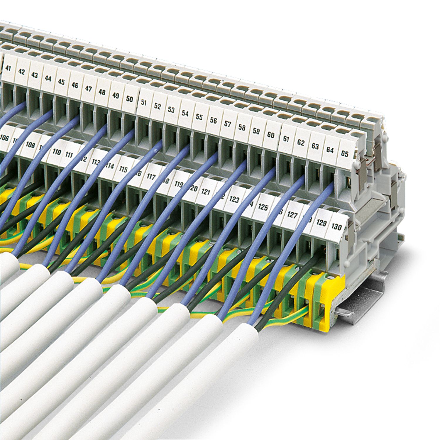 Borne de dois níveis, tensão nominal: 500 V, corrente nominal: 30 A, tipo de conexão: Conexão a parafuso, 1. e 2o. nível, Bitola: 4 mm2, perfil de conexão: 0,2 mm2 – 4 mm2, tipo de montagem: NS 35/7,5, NS 35/15, cor: cinza