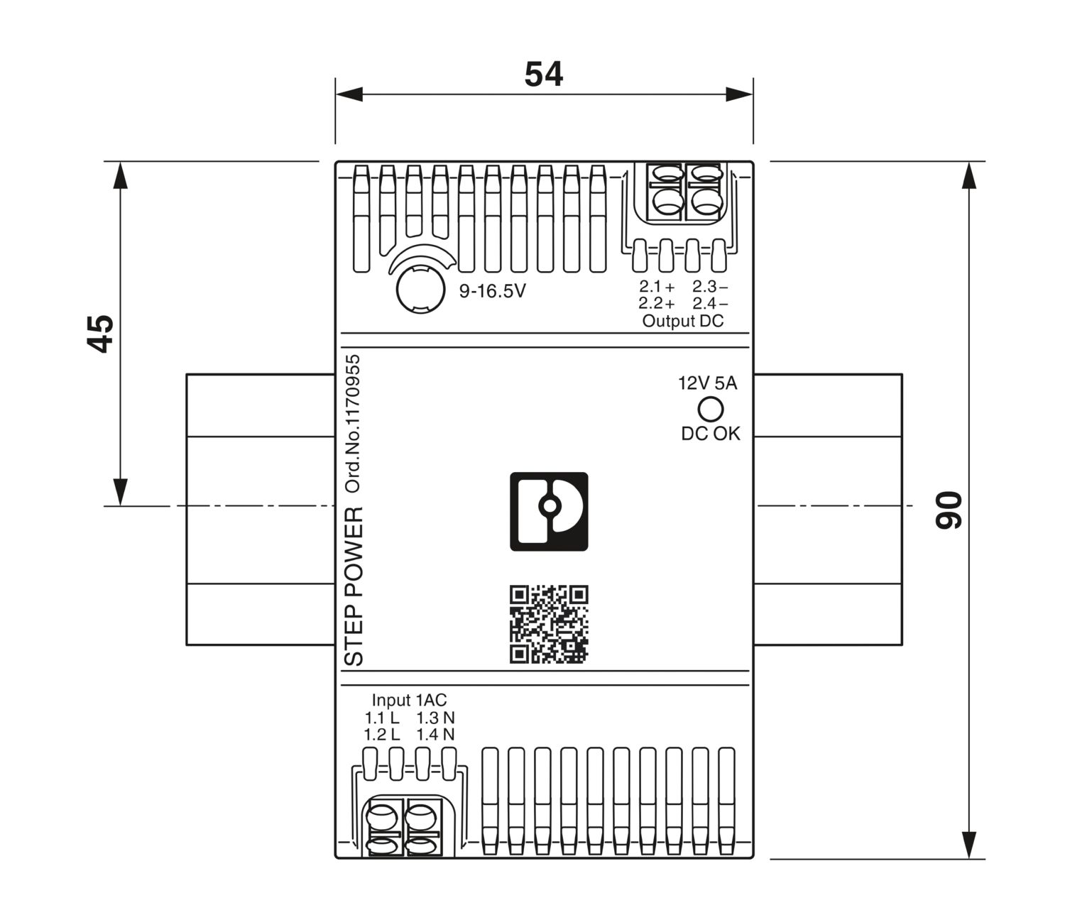 Fonte de alimentação com ciclo primário, STEP POWER, Conexão Push-in, Montagem direta ou em trilho de fixação, entrada: 1 fásico, saída: 12 V DC / 5 A, ajustável de 9 V DC … 17 V DC