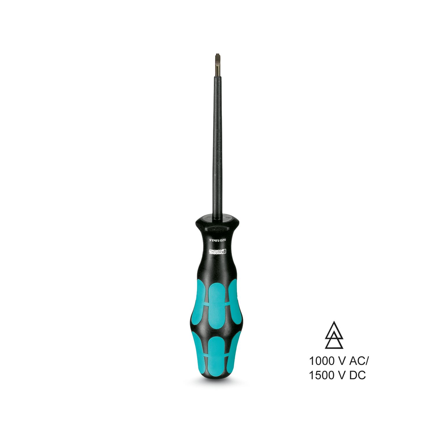 Chave de fenda, para parafusos com ranhura, graduada, para parafusos para conector de teste, tamanho: 0,9×6,5×175 mm, cabo de 2 componentes, com proteção antideslizante