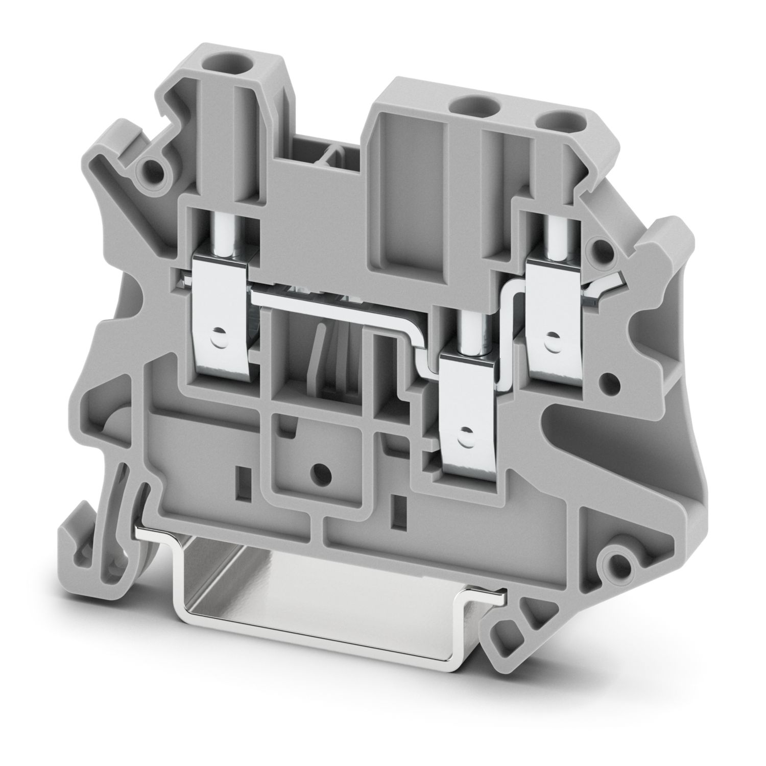 Borne de dois níveis, tensão nominal: 500 V, corrente nominal: 24 A, tipo de conexão: Conexão a parafuso, Bitola: 2,5 mm2, perfil de conexão: 0,14 mm2 – 4 mm2, tipo de montagem: NS 35/7,5, NS 35/15, cor: cinza
