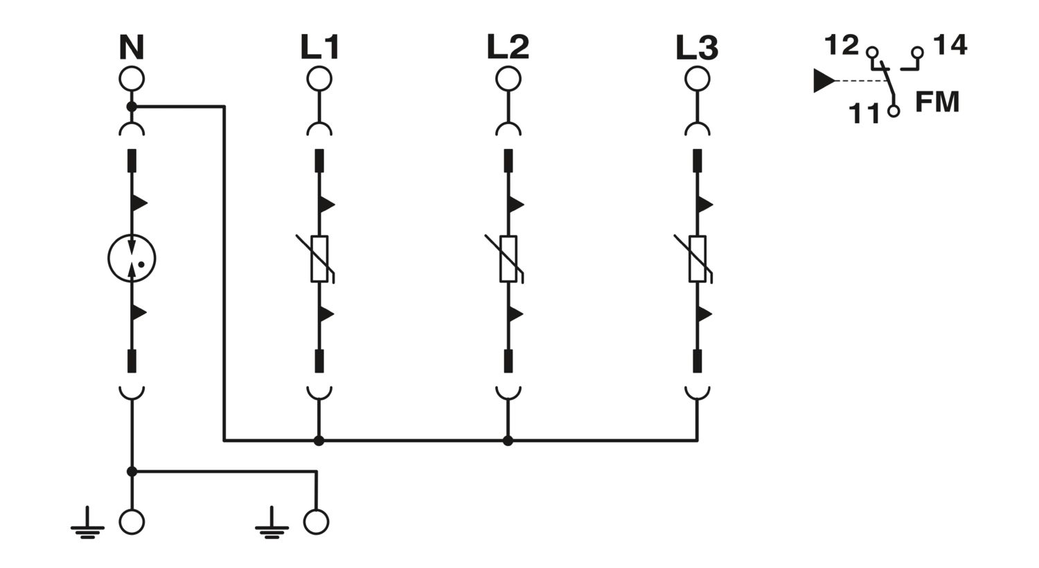 Protetor composto de base com contato FM e conectores de proteção, para montagem sobre NS 35/7.5, tensão nominal: 320 V AC, ligação 3 + 1